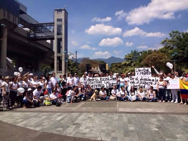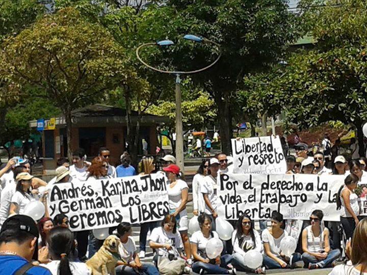 | Marcha en Medellín pidiendo la liberación de los geólogos. (@LaCaroTrina) |